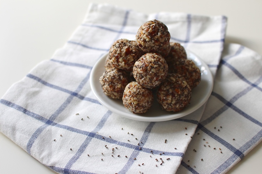 Posušenim figam odstranimo peclje in jih damo v srednje veliko posodo, zalijemo z vročo vodo in jih namakamo od 5 do 10 minut. V vmesnem času v mikserju zmešamo mandeljne in jim dodamo kakav v prahu, vanilijev ekstrat, cimet in sol. Odcedimo fige in jih dodamo ostalim sestavinam. Nato vse skupaj zmešamo v mešalniku, da nastane krhko testo. Celotno mešanico prestavimo v skledo in ji dodamo čokoladne kapljice. Ko imamo testo pripravljeno, vzamemo čajno žličko in oblikujemo približno enake kroglice. Kroglice za nekaj časa postavimo v hladilnik in jih kasneje postrežemo.