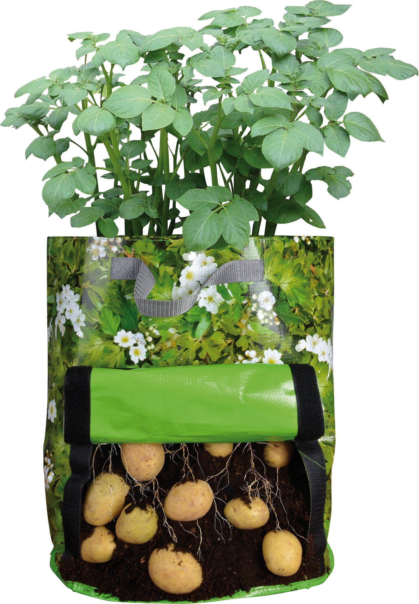 Kaj potrebujemo za gojenje krompirja? Ne potrebujemo vrta ali njive, le sadilno torbo za sejanje krompirja Esschert Design, toplo sončno mesto in približno 40 litrov zemlje. Vrečko napolnimo s približno 30 centimetrov zemlje ali komposta in vanjo položimo tri kaljive krompirje, pri čemer naj bodo krompirjeva očesa usmerjena navzgor. Ko je čas za žetev, vrečko preprosto izpraznimo in oberemo krompir. Pa dober tek!