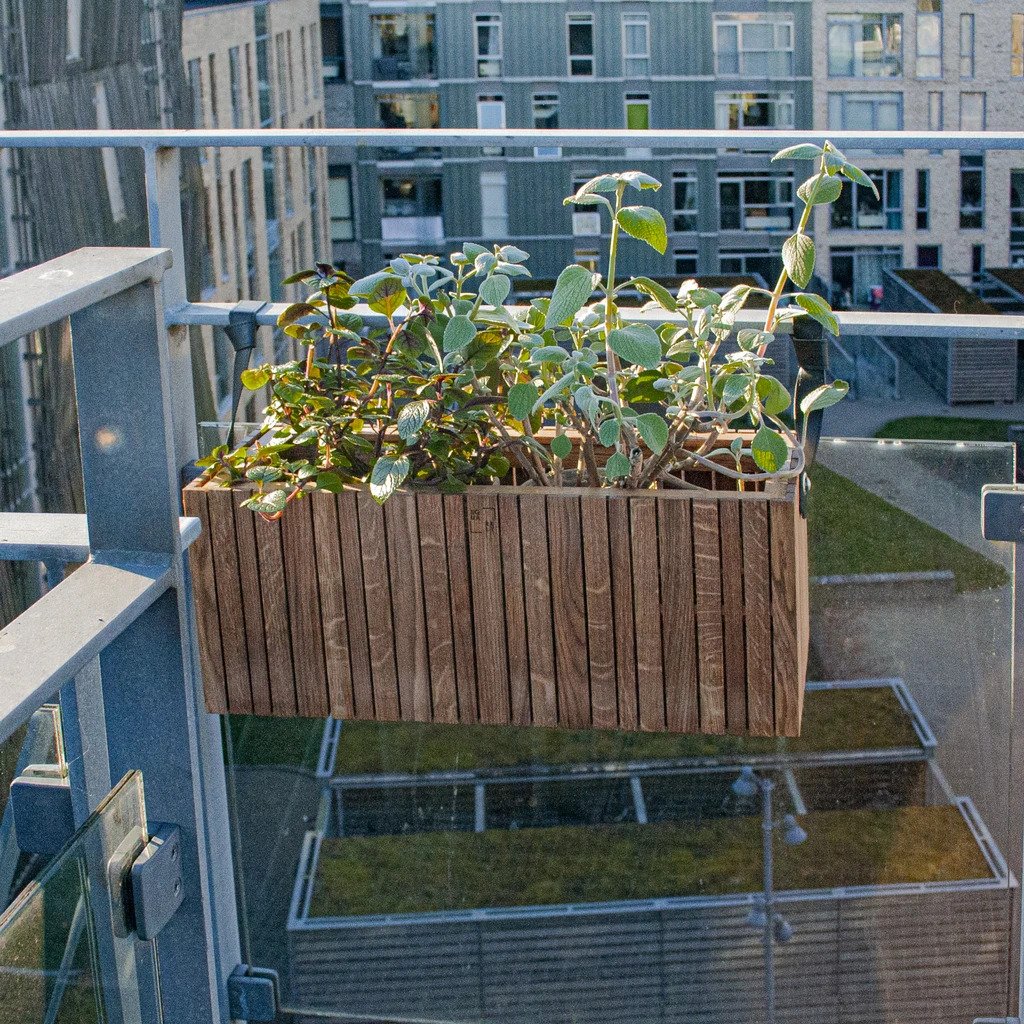 Tudi če nimamo balkona ali na njem nimamo več prostora, se nam ni treba odpovedati še eni zeleni gredici. Dansko podjetje Squarely se podpisuje pod lesena korita GrowON HoldON, ki so na voljo v različnih velikostih in barvah in ki jih preprosto ter varno obesimo na balkon ali okensko ograjo. Vedno si lahko pričaramo zeleno oazo.