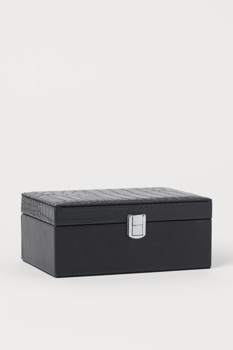 Tudi dekorativna škatlica v črni barvi najde svoje mesto in funkcionalnost kot shramba za daljinski upravljalec.