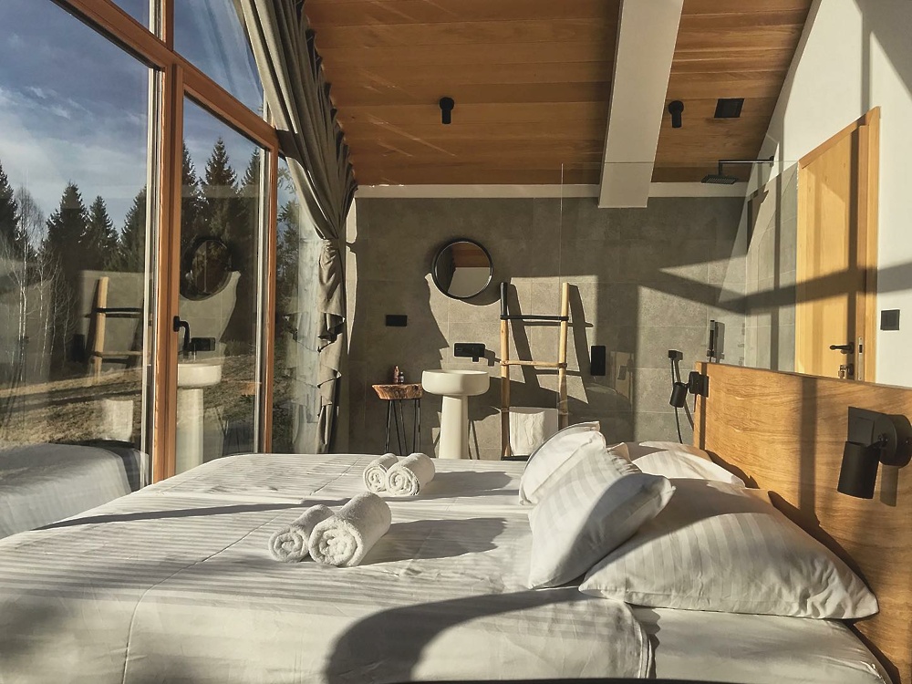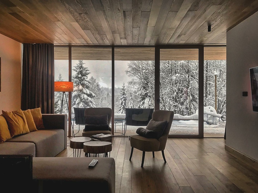 Prevladuje les, ki v hladnih zimskih dneh, daje občutek toplote. Hiša ima tudi ločeno garažo in bazen, tako da se tja lahko odpravite tudi poleti. Mogoče celo že letos poleti.