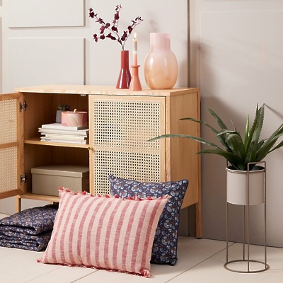 Ženstvenost je vidna tudi v mehkem tekstilu. Blazine z zanimivo teksturo in resicami spominjajo na pisano pomlad ter vabijo k eksperimentiranju z barvami.