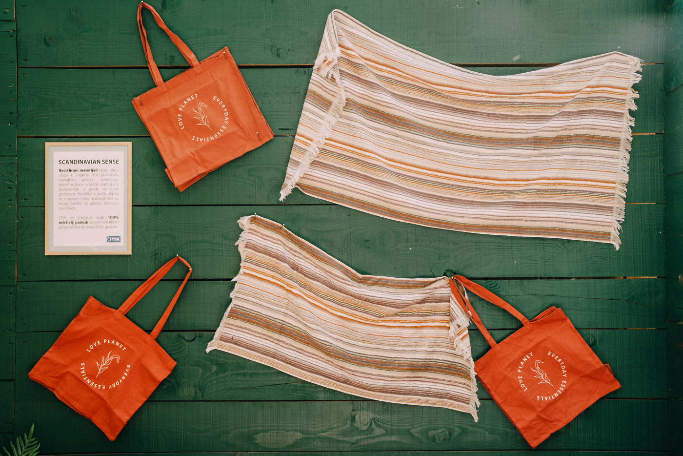 Reciklirani materiali prav tako igrajo pomembno vlogo v JYSK-ovih serijah izdelkov. Plastenke in ostanki bombaža iz proizvodnje se uporabljajo pri izdelavi novih izdelkov, kot so brisače.