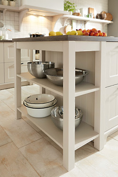 Poleg lesa v sodobni tradicionalni kuhinji dominira tudi kamen. Granitne ali marmorne delovne plošče zagotavljajo razkošen zaključek tradicionalnih lesenih enot. Omarice naj bodo mešanica masivnega lesa z nekaj steklenimi vrati, za katerimi lahko razstavimo svojo najljubšo kuhinjsko opremo, posodo in sestavine, lično shranjene v steklenih kozarcih in pločevinastih posodah. Podobno kot tradicionalna kmečka kuhinja se tudi italijanske kuhinje osredotočajo na kuhanje, zato njihovi lastniki kuhinjskih pripomočkov ne skrivajo, ampak jih ponosno postavljajo na ogled.