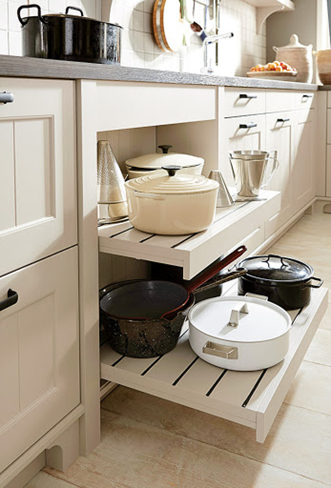 Posode in ponve, obešene na steno nad štedilnikom, so tako praktičen kot estetski način, da v dom vnesemo domačnost.