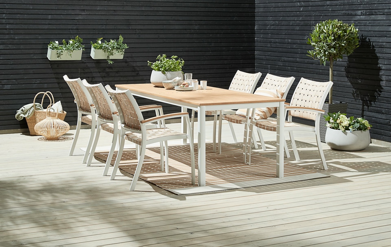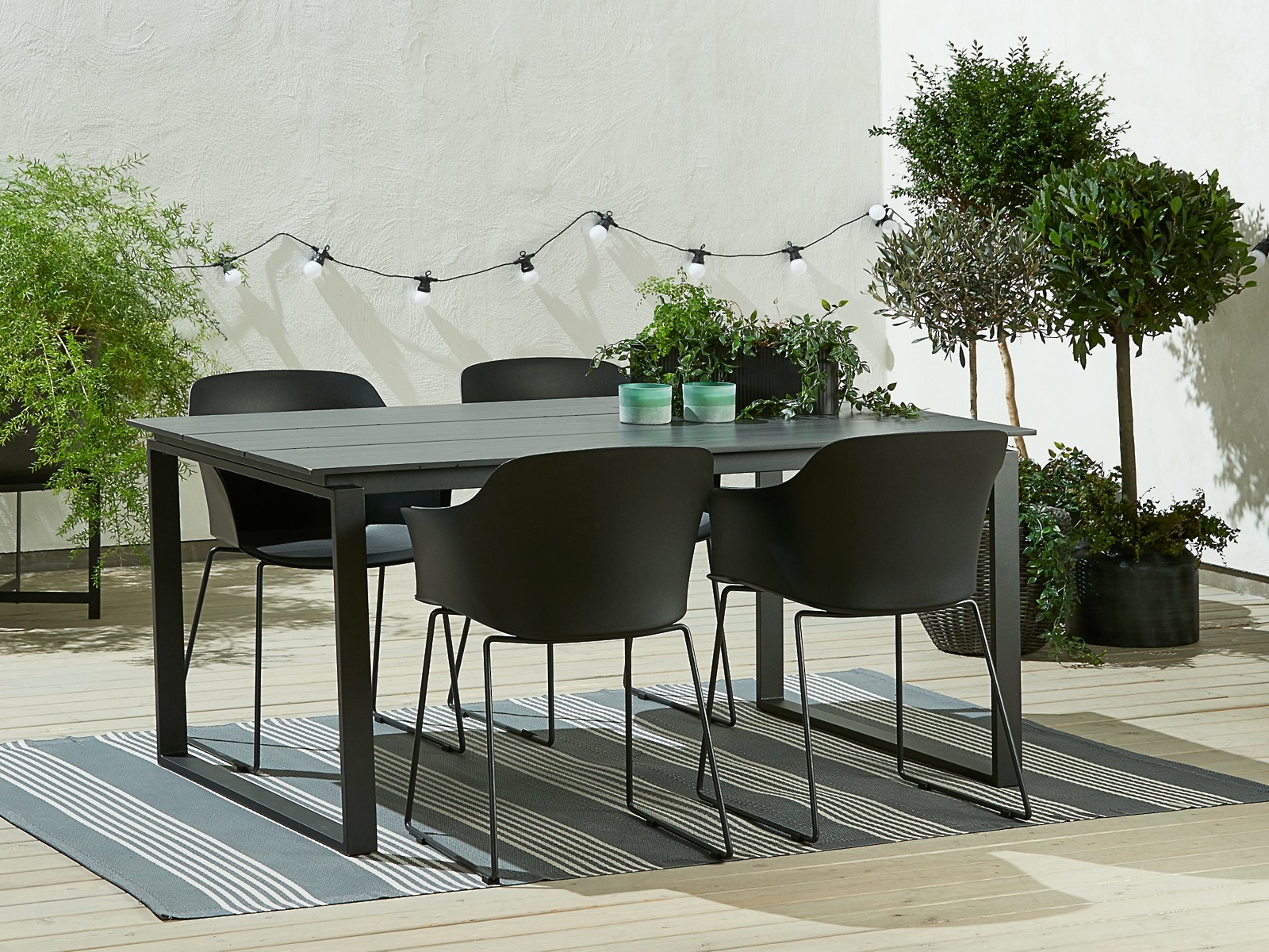 Poleg boemskega stila, ki vabi v svoj naravni objem, je letos pri opremljanju zunanjih prostorov še kako prisoten tudi bolj sodoben in urban videz. Če ste srečnež/srečnica z velikim balkonom, si na njem poleg kotička za počitek in branje knjig uredite tudi jedilnico na prostem. Skrivnost urbanih vibracij na domačem balkonu je surov, a eleganten slog.