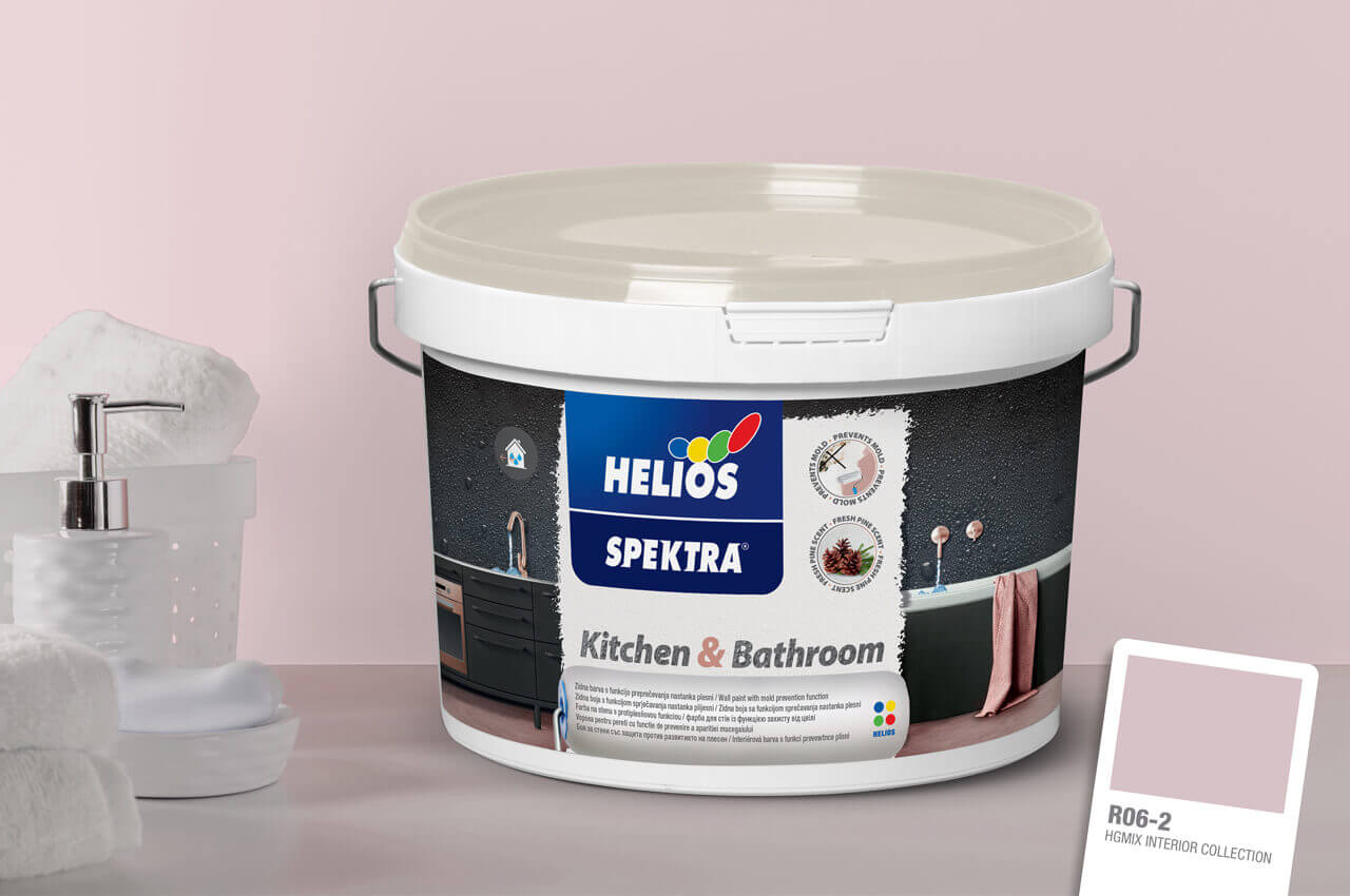 Pa barva v kopalnici res predstavlja praktično rešitev? Zagotovo, vendar je treba izbiri notranje zidne barve v tem primeru posvetiti nekaj več pozornosti. Varno izbiro predstavljajo barve za posebne namene, ki združujejo biocidne lastnosti (preprečujejo razvoj plesni) in zavirajo tvorbo kondenza ter so tako primerne za prostore, kjer se tvori večja količina vodne pare. Notranja zidna barva SPEKTRA Kitchen & Bathroom, kot pove že samo ime, je tako poleg uporabe v kopalnicah primerna tudi za kuhinje.