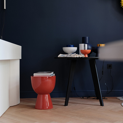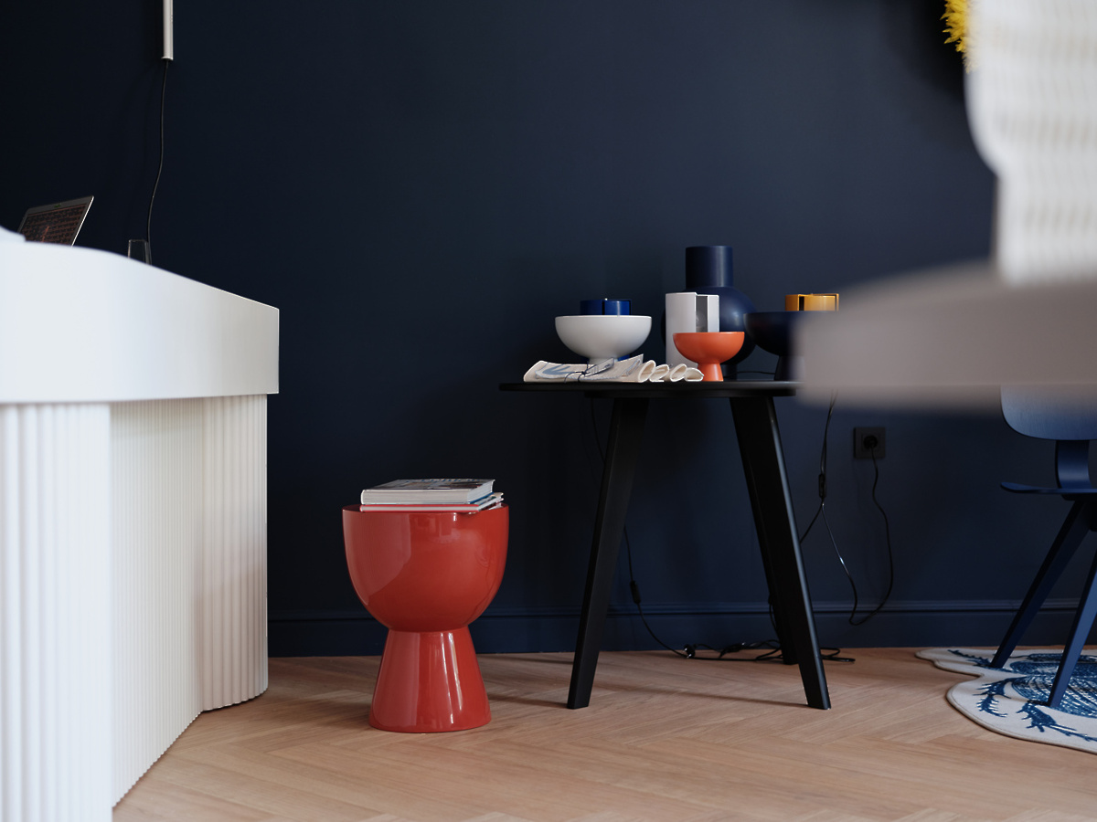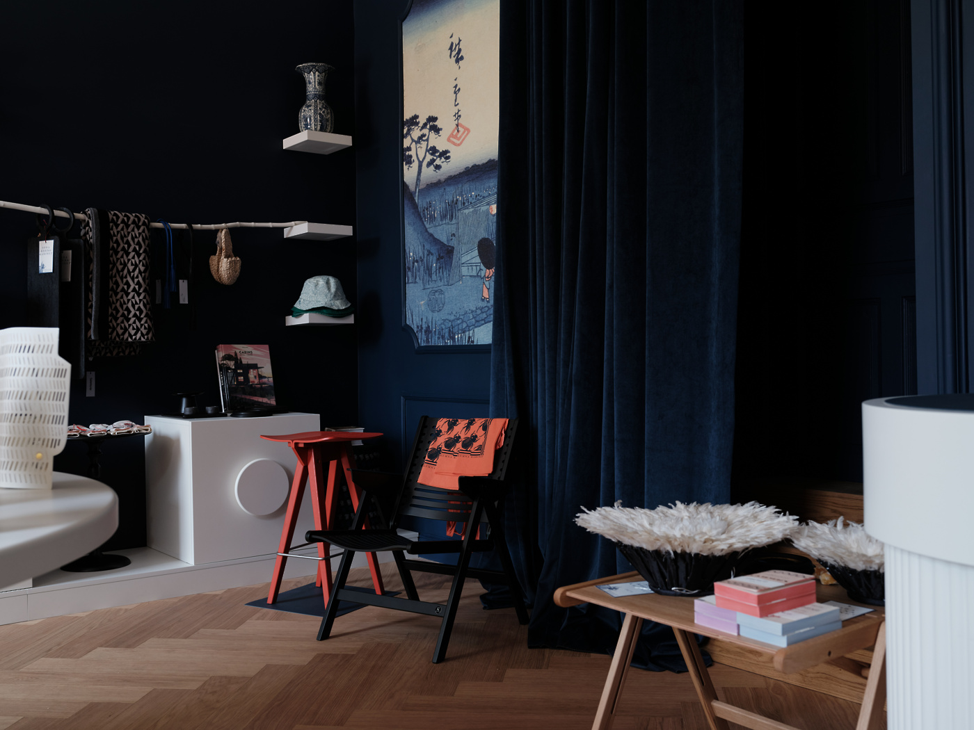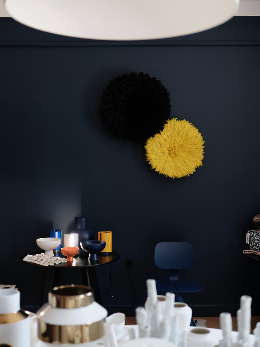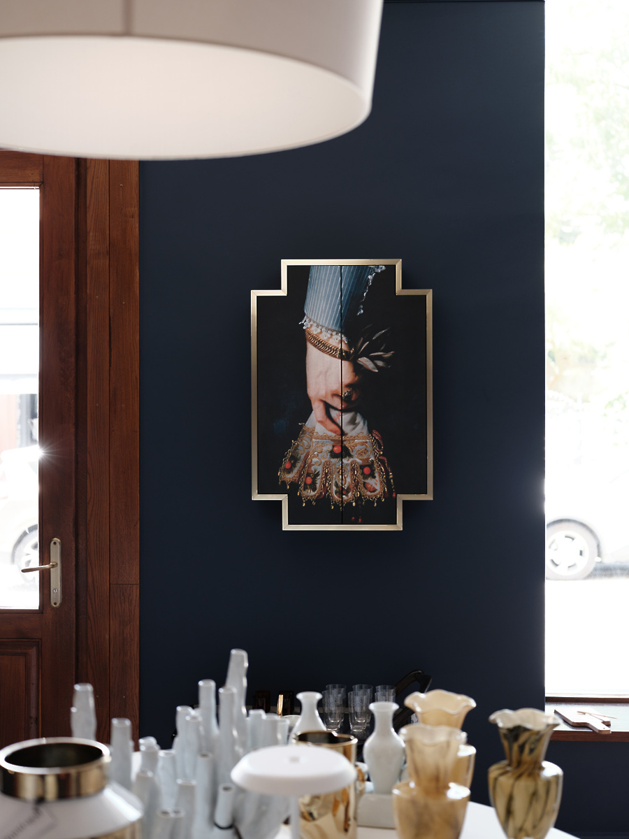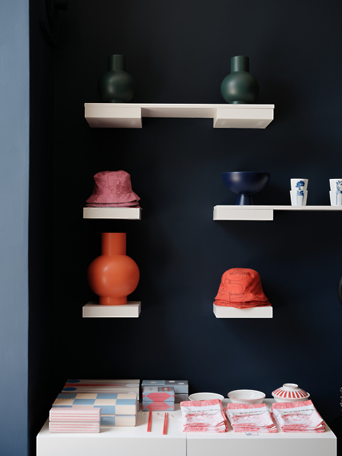 V trgovini vas čaka nabor številnih tujih in slovenskih znamk, ki jih druži kakovostna in trajnostna izdelava ter naklonjenost sodobnemu oblikovanju. Med njimi najdete danski Raawii z brezčasno oblikovanimi skledami in vazami, italijansko znamko svetil Nemo Lighting, britanske trajnostno zasnovane in sodobno oblikovane namizne igre Printworks, barcelonski oblikovalski studio Octaevo, literarno navdahnjene beležke in bloke Libri Muti, amsterdamsko znamko z dekorativnimi izdelki za dom Pols Potten ter ročno izdelane izdelke Be Home. Domač nabor ponuja različne tkanine in poletne klobučke “bucket hat” Davida Tavčarja, pletene izdelke Almire Sadar, volnene oddeje Ksenije Baraga ter večno oblikovanje znamke Rex Kralj, za katere smo prevzeli tudi zastopstvo v regiji. Izdelke za dom dopolnjujejo tudi tematsko izbrane knjige založb Taschen in slovenske založbe Vida. Posebno mesto v trgovini ima Tabernakelj Andreje Japelj, ki je namenjen shranjevanju pomembnih in manj pomembnih stvari. V njem sta združena sodobna tehnologija lakiranega potiska in historičen motiv, ki ga dopolnjuje zlata obroba iz kovine. Zaradi navdušenja nad nizozemskimi slikarji je bil izbran detajl roke iz slike Portret ženske slikarja Pickenoya, ki simbolno varuje hišo in vsebino tabernaklja.