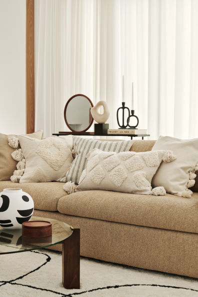 Pri H&M-u še vedno stavijo na nevtralno barvno paleto, nad katero smo se lahko navduševali že lani. Poleg tega so pričeli eksperimentirati z različnimi teksturami. Ratan, marmor, žamet in bombaž ustvarjajo umirjen in prijeten ambient v vsaki sobi doma.