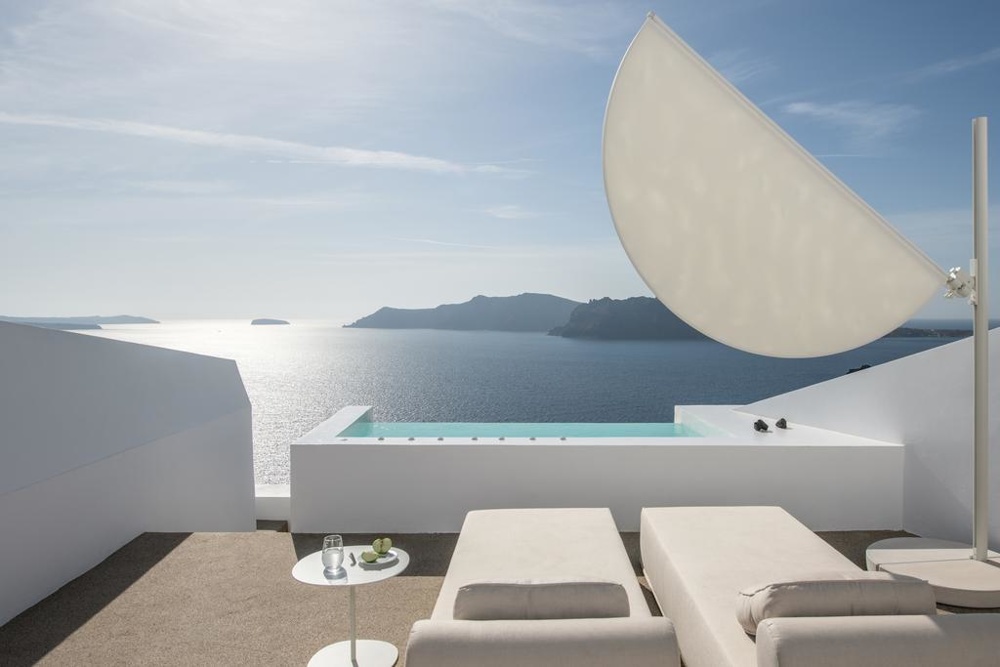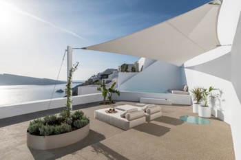 Čudovit hotel na pobočjih grškega otoka Santorini