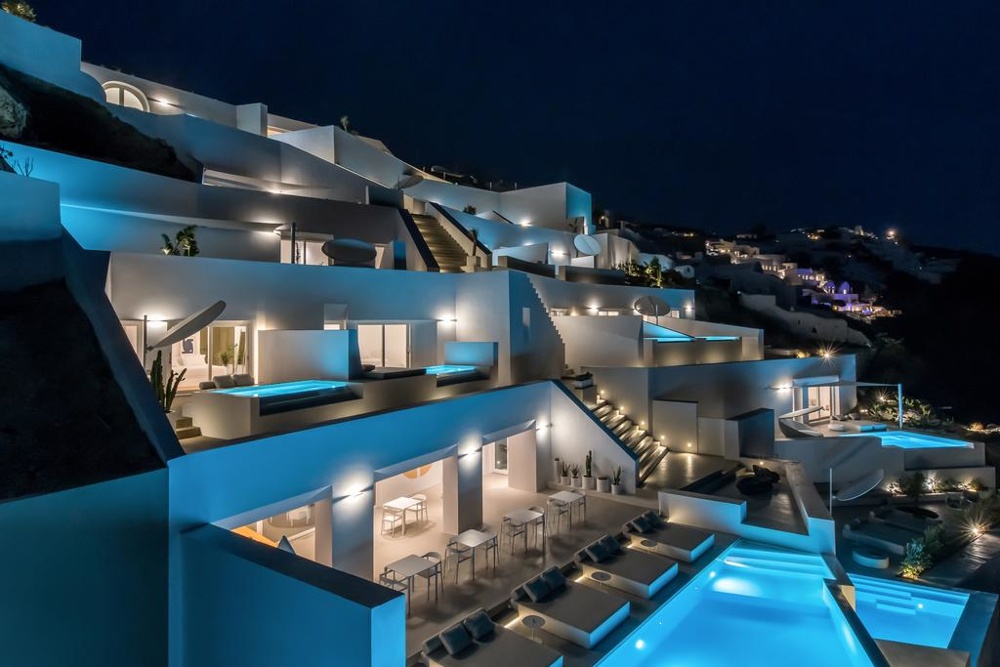 Arhitekturni biro Kapisimalis je v najlepši vasici na Santoriniju zgradil hotel Saint. Na otoku, znanem po svoji razgibani pokrajini, ki jo je oblikoval izbruh vulkana, so v zadnjem času postali izredno popularni apartmaji, ki so vkleasni v pobočje in s svojimi polkrožnimi stropi spominjajo na jamo. In ravno to je hotel Saint, saj vsebuje vse vidike klasične kikladske arhitekture.