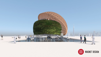 Družba Magnet Design je žirijo očarala s paviljonom Slovenia – Green Smart Experience. Izbrana rešitev predvideva objekt v treh nadstropjih, ki naj bi predstavljali Slovenijo kot zeleno oazo v Evropi in času razstave v puščavi.