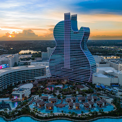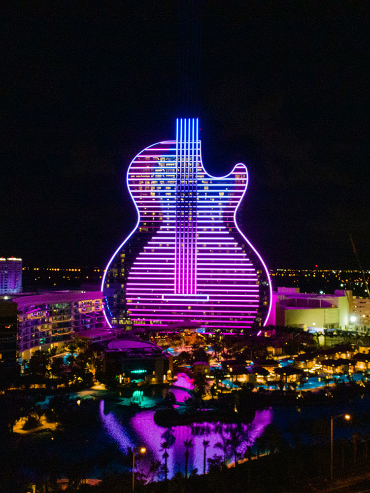 Hard Rock Hotel je v mestecu Hollywood na Floridi odprl hotel v obliki kitare. Prvi hotel v takšni obliki je visok 137 metrov in predstavlja poklon glasbeni zapuščini znamke. Hotel, ki se imenuje The Guitar Hotel, ima kar 638 sob in suit, ki jih obkrožajo od stropa do tal segajoča okna.