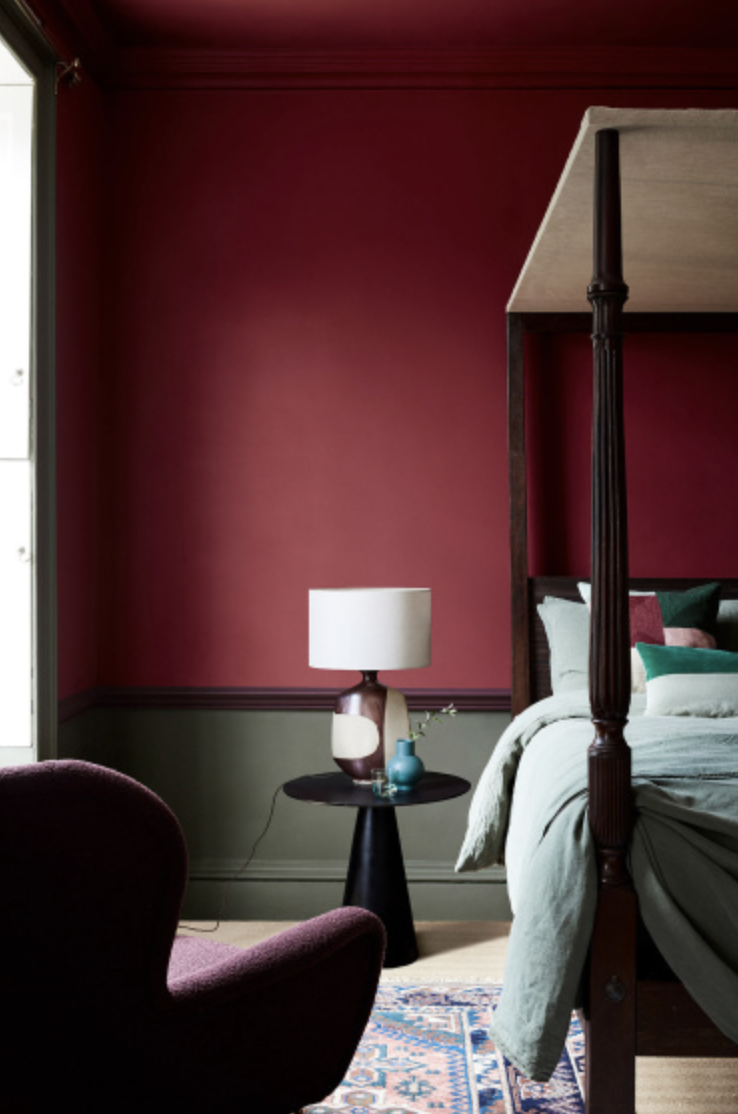 Bogati rdeči odtenki so to pomlad priljubljeni pri vodilnih oblikovalcih, ki želijo ustvariti bogato, luksuzno vzdušje. Če nameravate uporabiti bordo barvo na stenah, nadaljujte z barvo na stropu. Dobro se bo odrezala tudi rožnata, bela pa bo preveč kontrastna.