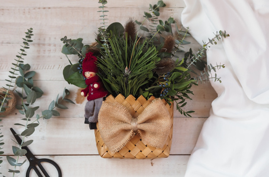 Ta košara, okrašena z majhnimi božičnimi zvezdami, storžki, orehi, jabolki in mahom, je odličen osrednji element za jesenske in zimske mesece, pa naj gre za darilo ali vsestransko dekoracijo vašega doma.