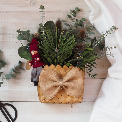 2. Oblikujte okrasni trak ali pentljo za okrasitev košare in jo pritrdite.