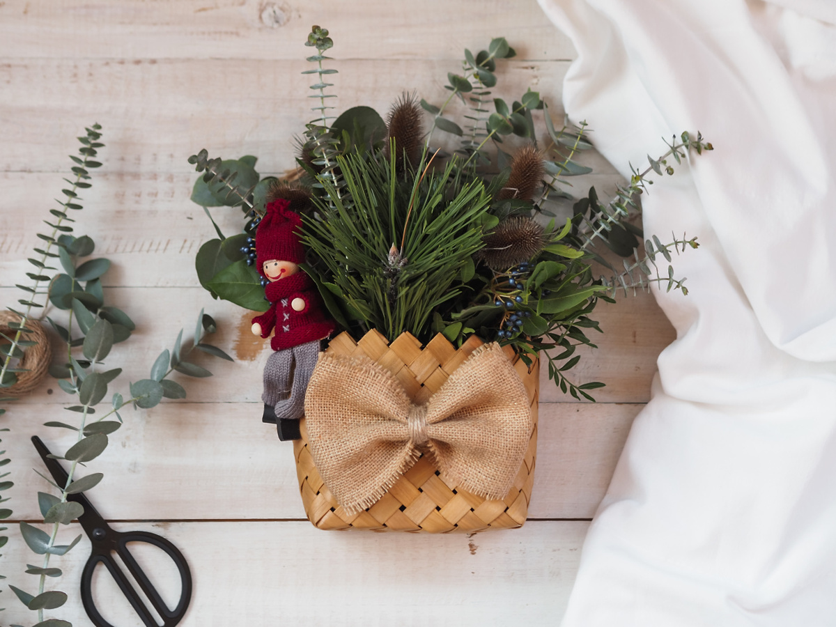 3. Šopek položite v košaro in ga okrasite z detajli iz bližnjega parka ali gozda, kot so npr. želodi, kostanji, šipek, storži in podobno.