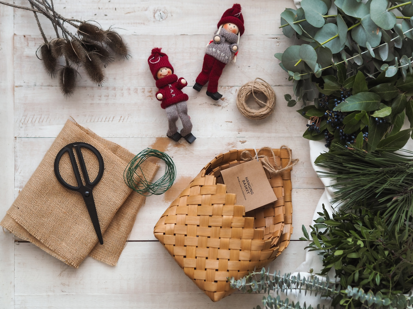 1. Zelenje povežite z vrvico ali žico v šopek, ki ustreza velikosti košare.