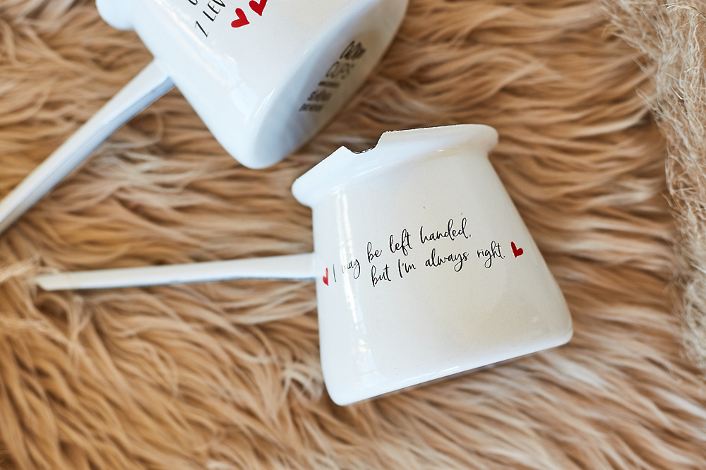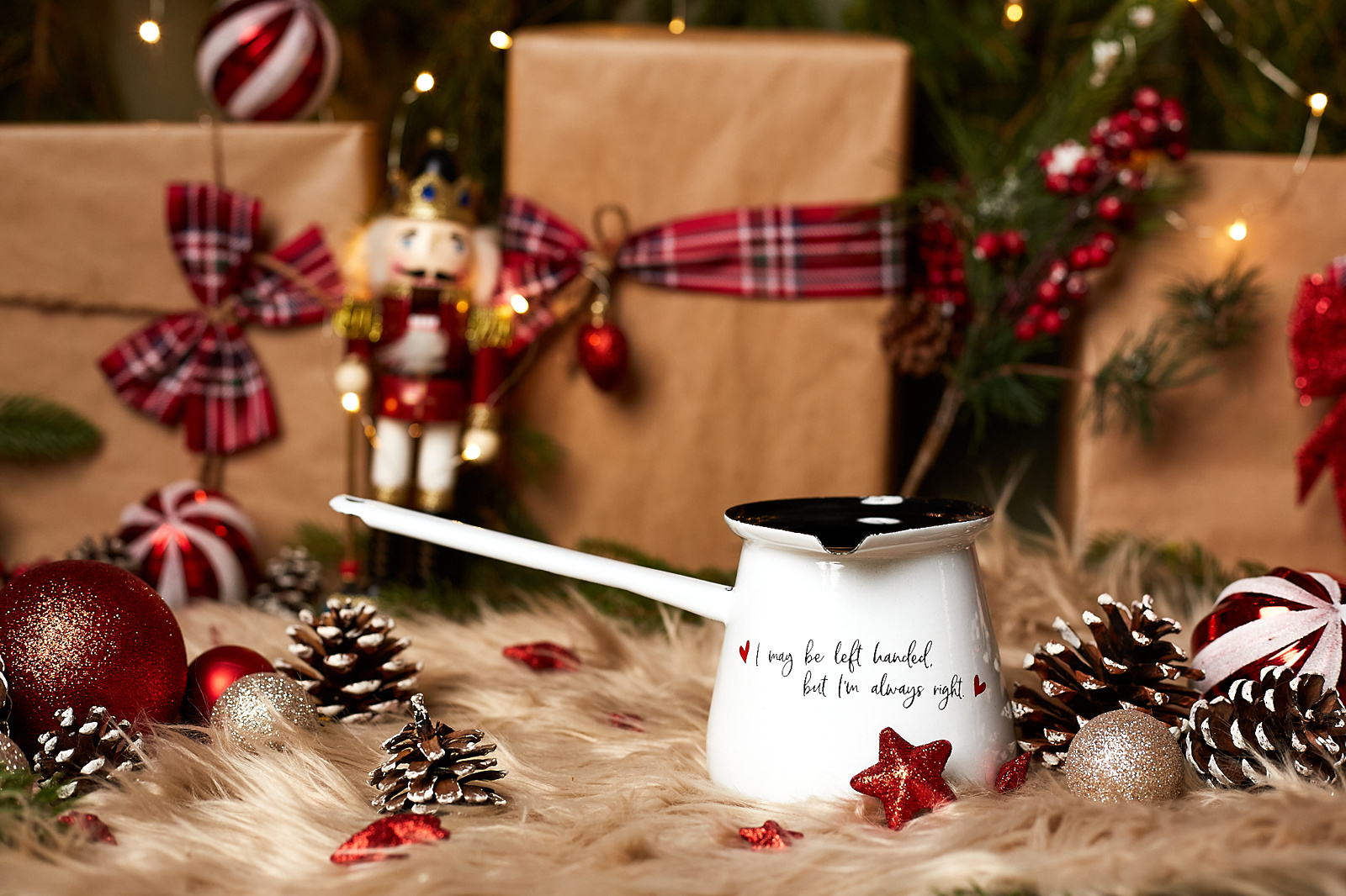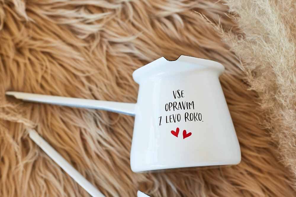 V Cuckoo predstavljajo novost – emajlirano džezvo za kavo, ki ji na svetu ni enake! Gre za njihovo najnovejšo pridobitev, za katero so se trudili dve leti in do sedaj še niso našli nikogar, ki bi imel takšen izdelek. Imate doma levičarja? Podarite mu džezvo, narejeno posebej zanj. Je odlično božično darilo, ki bo razveselilo vsakega prijatelja, ki piše z levo roko ali pa zabavno darilo za nekoga, ki mu želite povedati, da ima dve levi roki. Na voljo je džezva za levičarje s slovenskim motivom, angleškim motivom ali pa z napisom po želji.