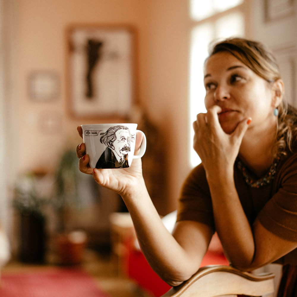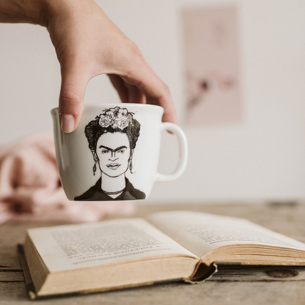 PolonaPolona z novimi skodelicami z motivom Fride Kahlo