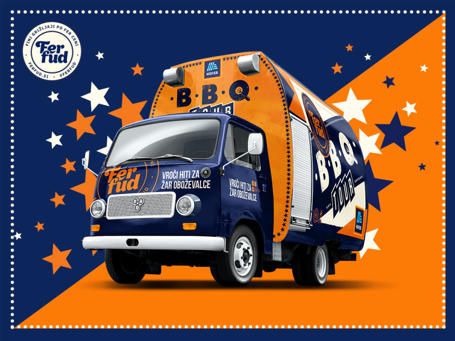 Kulinarično-dobrodelni projekt FerFud se vrača na slovenske ulice. Tokrat s turnejo vročih žar hitov, ki so jih v svojih studiih iz HOFERjevih kakovostnih sestavin skomponirale legende slovenskega BBQ žanra. Dame in gospodje, velik aplavz za avtorje najbolj nepozabnih hitov od izuma ognja: Hood Burger, Sorbara Steak House, Hillbilly`s Smoke House in Pop's Place.