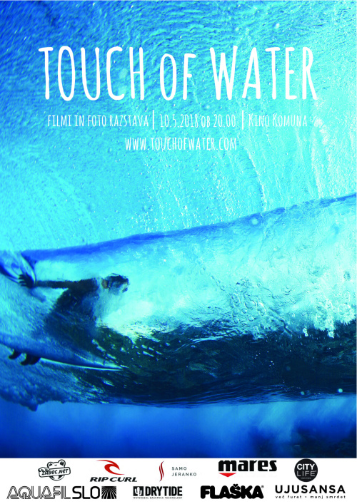 V ljubljanski Kino Komuna prihaja v četrtek, 10. maja 2018 ob 20. uri, prvi filmski večer "Touch of Water", ki se posveča vodi, našemu največjemu naravnemu bogastvu. Organizator vabi vse ljubitelje vodnih športov in čiste narave na dogodek, kjer bodo prikazali več športnih filmov in naravovarstveni film "A Plastic Ocean".