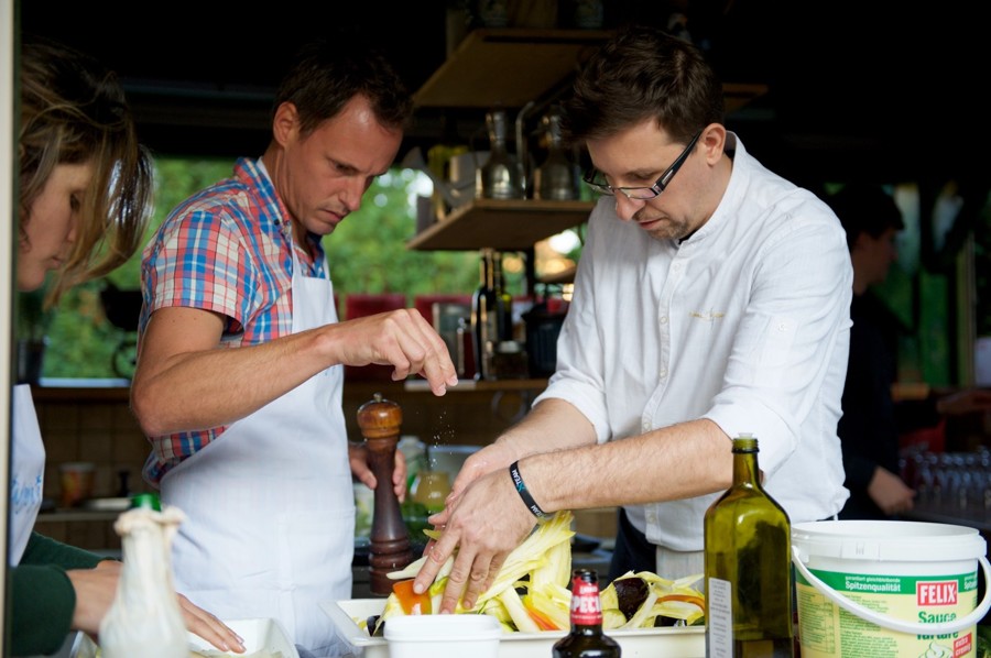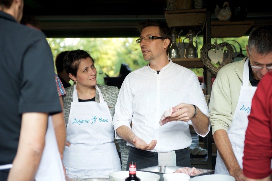 Na septembrski Kavalovi kulinarični ustvarjalnici je dišalo po toskanskem žaru. Pod budnim očesom kuharskega mojstra Dragana Marjanoviča smo se, ob prijetno ohlajenem pivu pivovarne Union, naučili peči na pravem toskanskem žaru. Sline so se nam cedile ob pripravi mesnih specialitet, sira in zelenjave z žara, glavno jed pa smo zaključili s sladkim presenečenjem. Glavnemu Chefu in vsem ljubiteljem dobre hrane je družbo delala priljubljena pevka Nuška Drašček.