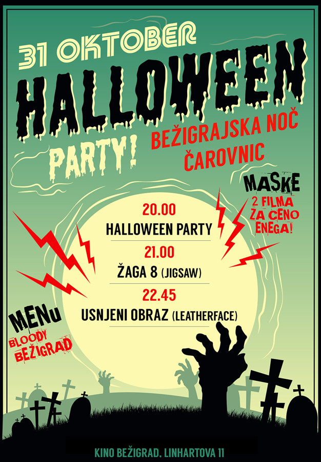 Če smo obudili nekaj legendarnih grozljivk, pa temu primerno tudi zaključimo – zadnji dan v oktobru bo v ljubljanskem Kinodvoru že 10. leto rezerviran za Noč grozljivk. Gre za tradicionalni maraton grozljivk po izboru Marcela Štefančiča, jr., med katerimi se najdejo tako stare grozljivke kot tudi nove. Lahko pa obiščemo tudi prvo Bežigrajsko noč čarovnic v Kinu Bežigrad, ki bo potekala v dveh delih, in sicer so v dopoldanskih urah pripravili pester program za otroke, zvečer pa napoči čas za Bloody Bežigrad, ko se na platnu obeta dvojna porcija groze.