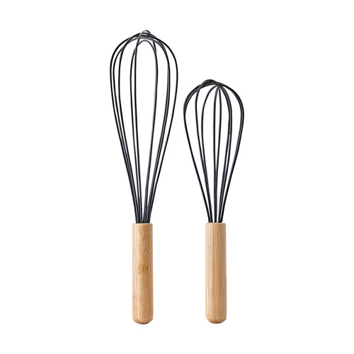 Mala in velika metlica z bambusovim ročajem sta na vrhu premazani s silikonom, ki preprečuje, da bi med uporabo pustili oznake na loncih.