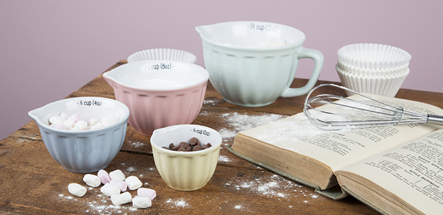 Set pastelnih merilnih skodelic v štirih standardnih dimenzijah bo peki dodal retro pridih. Cena: 15,34 evra.