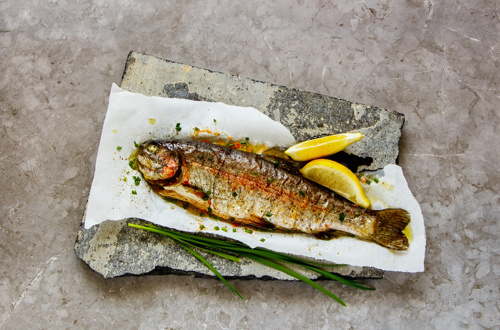 Pečena postrv, ki ji dodamo zelenjavo in začimbe, je odlična za hitro petkovo kosilo. Več