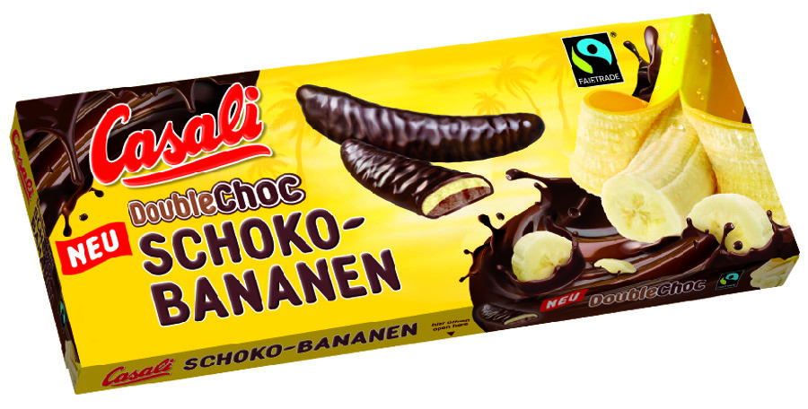 Čokoladne banane Casali Double Choc bodo na prodajnih policah od 1. maja dalje po ceni 2,20 evra.