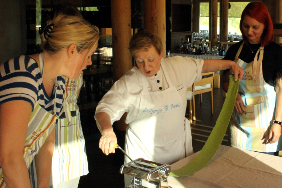 Druženje na Kavalovi kulinarični ustvarjalnici v restavraciji Evergreen na Smledniku je bilo tokrat namenjeno izdelavi ročno narejenih testenin po babičinih receptih.