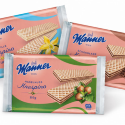 Mannerjevi široki paleti sladkih dobrot se je pridružil hrustljavi novinec. Na prodajne police v treh različicah kmalu prihaja Manner Knuspino, ki je okusna kombinacija hrustljavega vaflja in lešnikovega, čokoladnega oziroma vanilijevega polnila.
