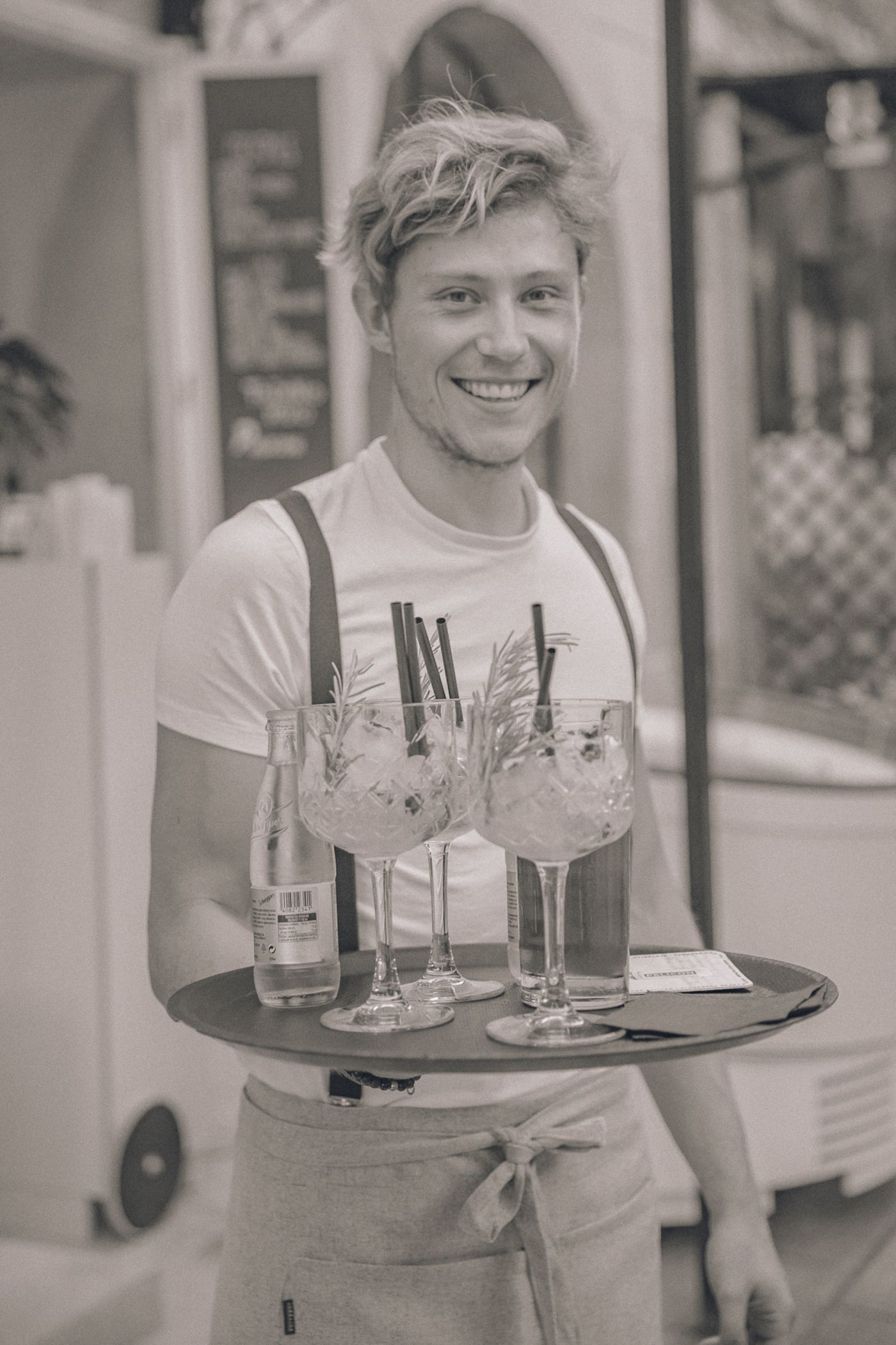 Namesto menija, ki bo sčasoma ponujal pravo bralno in vizualno izkušnjo, so poleti na mizah steklenice s sporočilom, ki vabijo, da pogledamo v nastajanje interierja in se o ponudbi pozanimamo v živo. Med pijačami najdemo brezalkoholni slovenski gin, koktajl espresso martini in domače ledene čaje, najrazličnejše kave pa bo pripravljal vodja lokala Matej Horvat. Sladice, kot sta torti Josipina in Vladimir, Yoko Mono tortice in butični sladoled bo ustvarjal Kavalov slaščičarski mojster Gregor Rode.