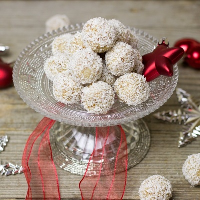 V posodi zmešamo stopljeno maslo, mandlje, zmlete piškote, sladkor in pomarančni sok. Maso gnetemo, dokler ne dobimo enakomernega testa, iz katerega oblikujemo kroglice, ki jih povaljamo v kokosovi moki. Kokosove krogljice hranimo v hladilniku.
