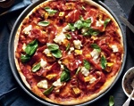 2. Za testo najprej zmešamo večnamensko in belo moko s soljo. Dodamo vodo, olje in kis ter mešamo toliko časa, da nastane zmes. Testo nato damo na pomokano površino in ga gnetemo toliko časa, da postane elastične teksture. Testo damo v posodo, ga pokrijemo in pustimo stati vsaj eno uro.