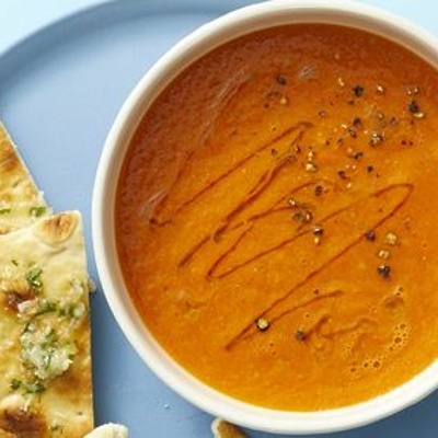 Recept - pikantna paradižnikova juha s sladko zeliščnimi pita kruhki