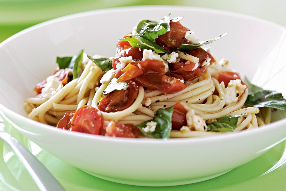 Recept - tik tok špageti s češnjevimi paradižniki in feta sirom