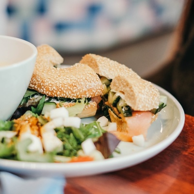 Jogurtovo omako namažemo v žemljico, dodamo solato, pečenega lososa, kumaro in brokoli ali kalčke. Dodamo zgornji del žemlje in postrežemo.