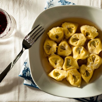 Tortellini en Brodo je za mnoge v severni Italiji, še posebno v regiji Emilija Romanja, povsem vsakdanja jed, največkrat v času počitnic. Za razliko od tipičnih tortelinov, ki jih velikokrat postrežejo v smetanovi omaki, so te pripravljeni preprosto – v domači piščančji juhi, ki jo nato potresemo še s sveže naribanim parmezanom.
