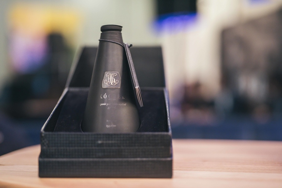 Luxury Black Bottle oljarne Kocbek je plod slovenskega znanja, izdelana v steklarni Hrastnik na podlagi potreb zahtevnejšim trgom in njihovim kupcem predstaviti ekskluzivni, unikatni, luksuzni izdelek s prepričljivo oblikovalsko zgodbo, vsebino in embalažo. Vsaka steklenica je ročno pihana v Steklarni Hrastnik iz najčistejšega stekla, brez primesi težkih kovin in postavljena v škatlo iz starega stoletnega hrastovega lesa.