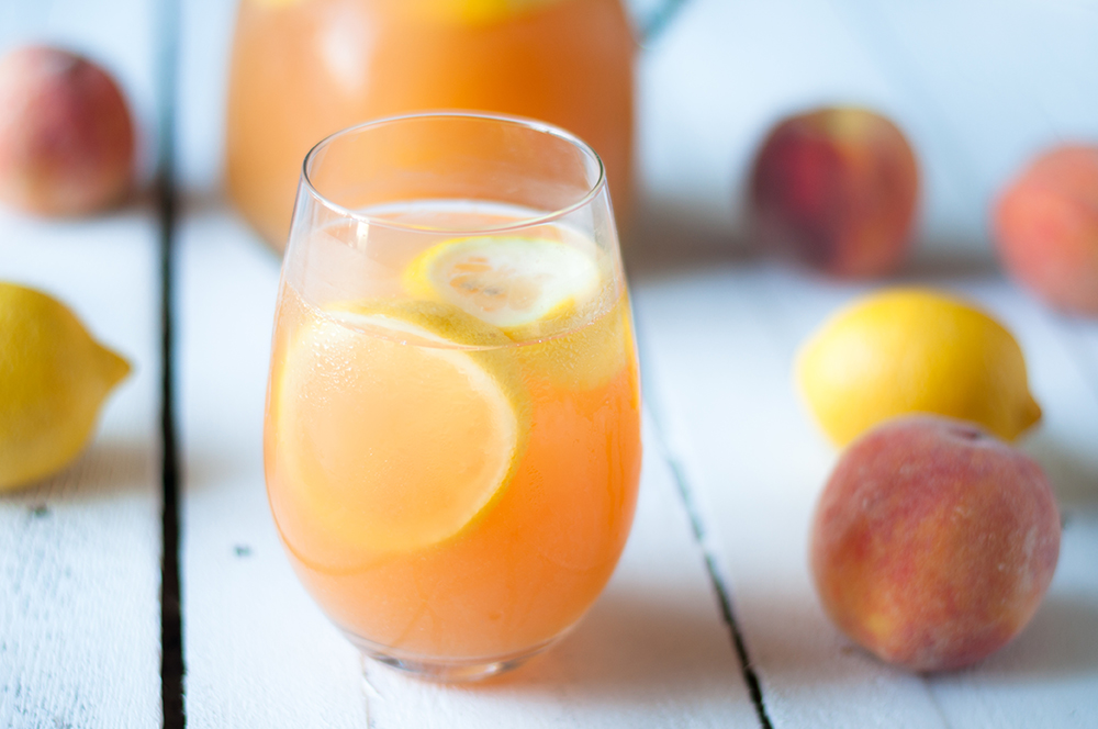 Breskve in ingver olupimo, narežemo na koščke ter jih s paličnim mešalnikom spremenimo v sadni pire. V vrču z ledom mu dodamo limonin sok in vodo ter po želji sladkamo z medom ali sladkorjem.