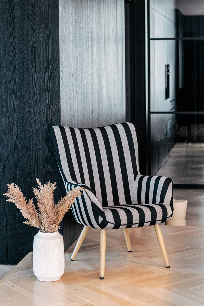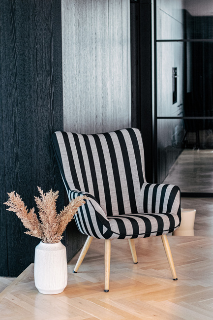 Klasičen črtasti vzorec je vedno v modi, saj prinaša svežino in dinamiko v prostor, pa naj si bo to v stari obnovljeni hiši nekje na obrobju mesta ali v modernem novem stanovanju v prestolnici. Udoben črtast fotelj ni samo estetsko privlačen, temveč tudi izjemno udoben. S tem kosom pohištva lahko enostavno ustvarite »hygge« vzdušje, kjer se boste želeli zaviti v toplo odejo in preživeti sproščene večere ob svečah. Vsak izmed vas v svojem domu potrebuje udoben kotiček, kjer se lahko sprosti ob branju dobre knjige ali ob omamno dišeči skodelici čaja.