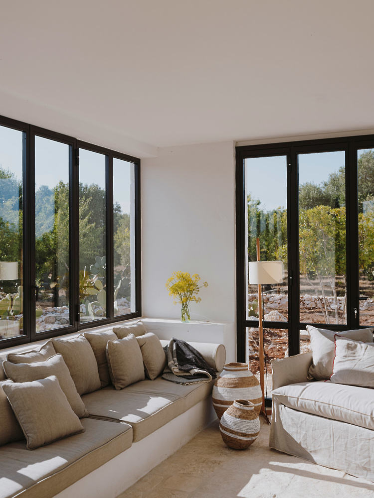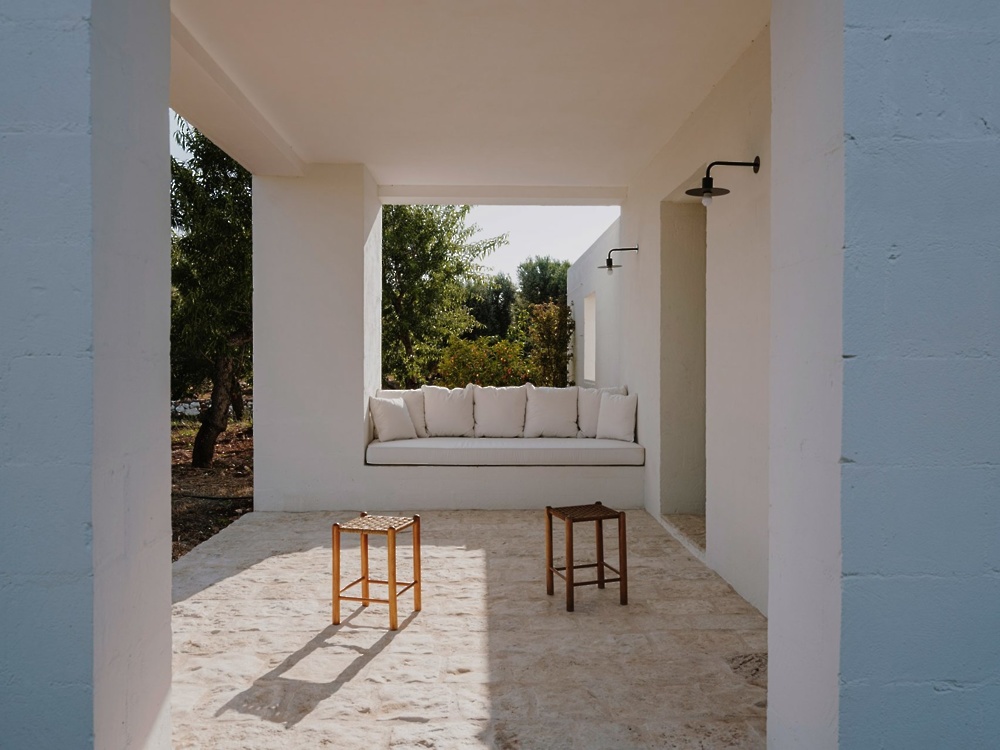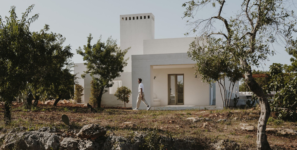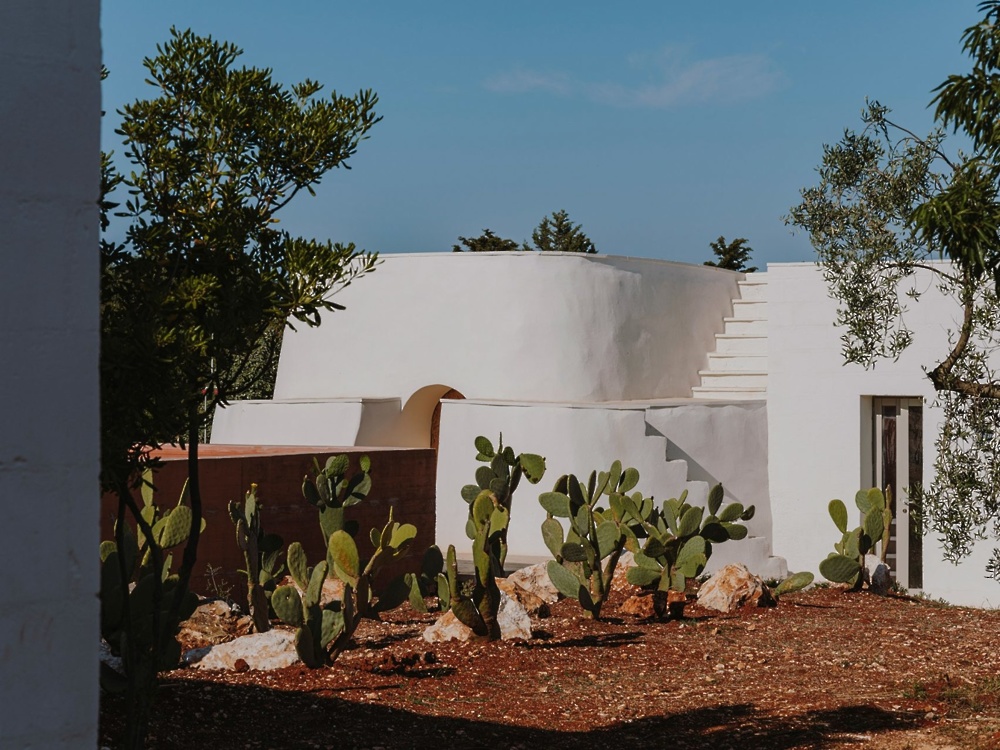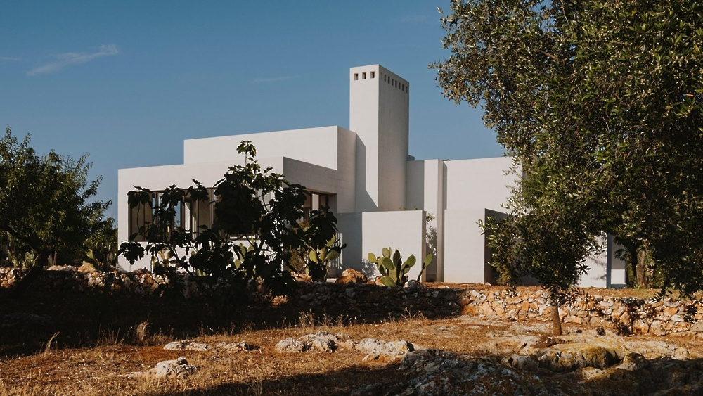 Villa zgrajena iz večih belih minimalističnih blokov se razteza čez en hektar zemlje, obkrožajo pa jo oljke in mandljevci. S strešne terase se razgled razteza vse do morja, ki je 7 km stran, najbližje leži čudovita plaža Torre Guaceto Natural Reserve, najbližje mesto Ostuni pa je oddaljeno 15 stran.