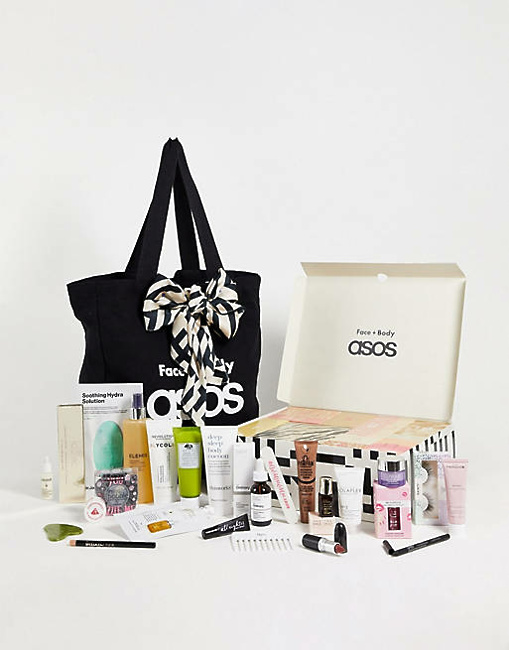 Adventni koledar Asos, v katerem najdete izdelke za telo in obraz, vsebuje 24 izdelkov, med katerimi je kar 15 izdelkov večje velikosti, vsak kos pa pride v svoji oštevilčeni škatli. Med izdelki najdete vse za nego kožo, nego las, ličila in modne dodatke. Vsebuje pa tudi potiskano tote torbo in potiskan šal.