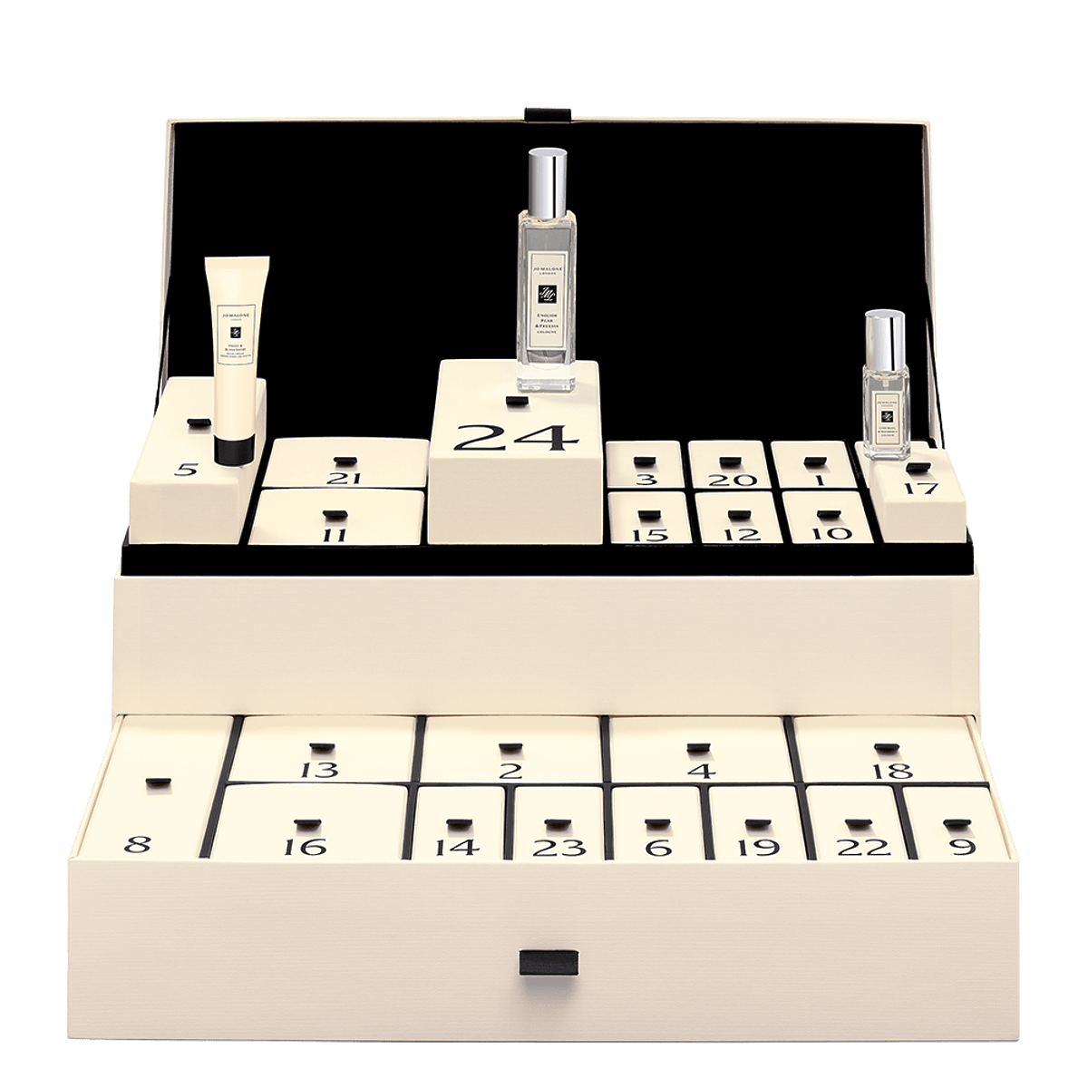Adventni koledar 2021 Jo Malone vsebuje 24 stekleničk parfumov in sveč, vse pa je lepo zapakirano v majhne lesene predalčke, ki skupaj sestavljajo večji zabojček. Po koncu praznikov lahko zabojčke uporabite za nakit ali ličila.