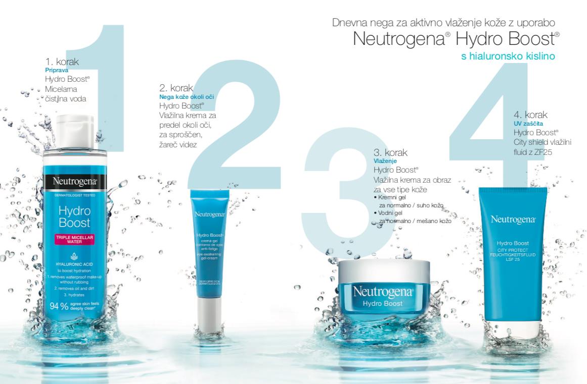Hkrati, zahvaljujoč glicerinu in olivnemu olju, krepi kožno bariero in preprečuje izgubo vlage, rezultat pa je mehak in gladek videz kože. Pri Neutrogeni se namreč dobro zavedajo, da je hidracija prvi pogoj za zdrav izgled kože. Nova linija Hydro Boost® koži zato nudi vlago, ki jo potrebuje tekom dneva. Zahvaljujoč Hyaluronic Gel matrix tehnologiji, se to zgodi točno takrat, ko je vaša koža izsušena.