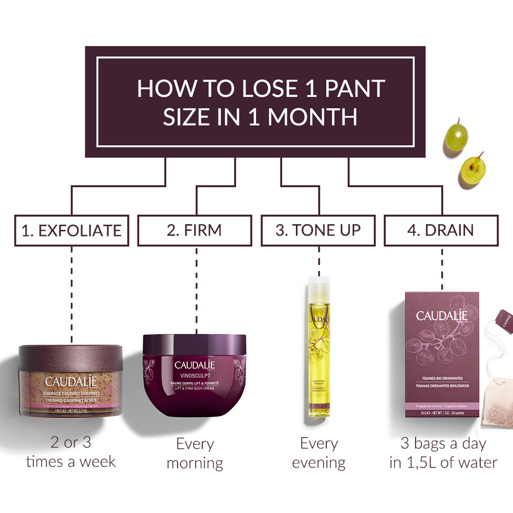 Kot odgovor na problematiko kože brez tonusa so strokovnjaki francoske znamke Caudalie ustvarili Vinosculpt - inovativno negovalno linijo za telo, polno visoko kakovostnih naravnih sestavin in formulacij, ki v štirih korakih nudi enkratno, celostno rešitev za hujšanje in nego kože telesa. Rezultat sta čvrsta koža in povrnjen tonus, hkrati pa lahko izkusite edinstven trenutek dobrega počutja in se prepustite občutku Vinotherapie nege kar v udobju svojega doma.