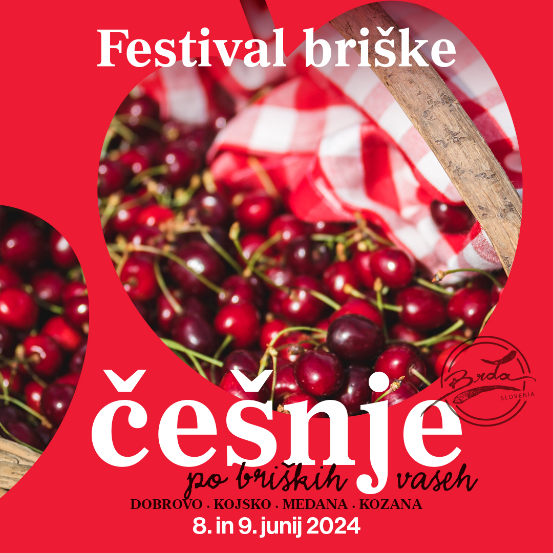 Rdeče kraljevske češnje bodo Brda obarvale že ta konec tedna, v soboto 8. junija 2024, ko bo vrhunec tritedenskega dogajanja z občinskim praznikom in Festivalom briške češnje po briških vaseh. Vse skupaj pa se bo zaključilo še teden kasneje ko v Brdih vrata odpirajo Dnevi odprtih kleti.